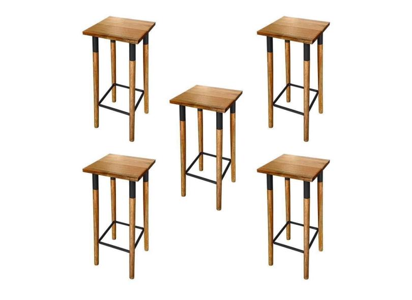 O menor preço encontrado no Brasil para Kit 5 Banquetas Bistro Industrial Colors Ferro E Madeira Maciça - Preta Preto atualmente é R$ 640,87.