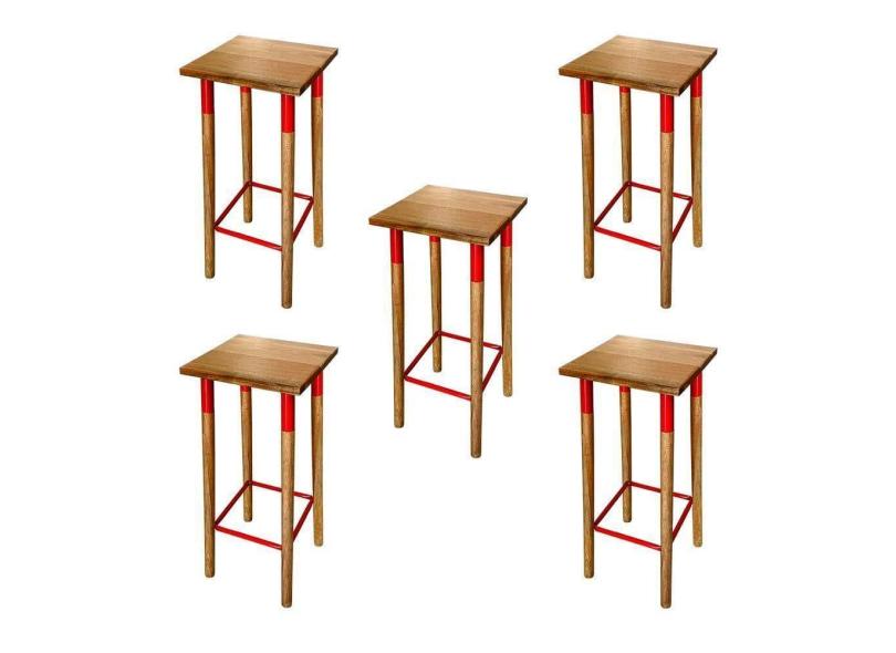 Kit 5 Banquetas Bistro Industrial Colors Ferro E Madeira Maciça - Vermelha Vermelho