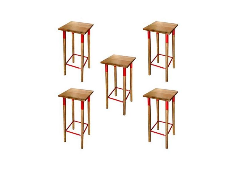 KIT 5 BANQUETAS BISTRO INDUSTRIAL COLORS FERRO E MADEIRA MACIÇA - VERMELHA