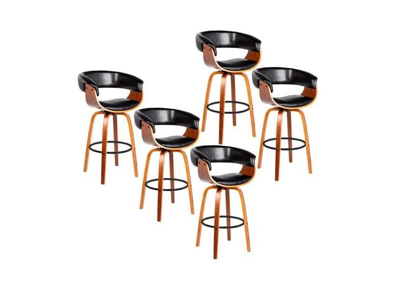 Kit 5 Banquetas Giratória Alta com Encosto Base Madeira Ravi R02 PU Pr