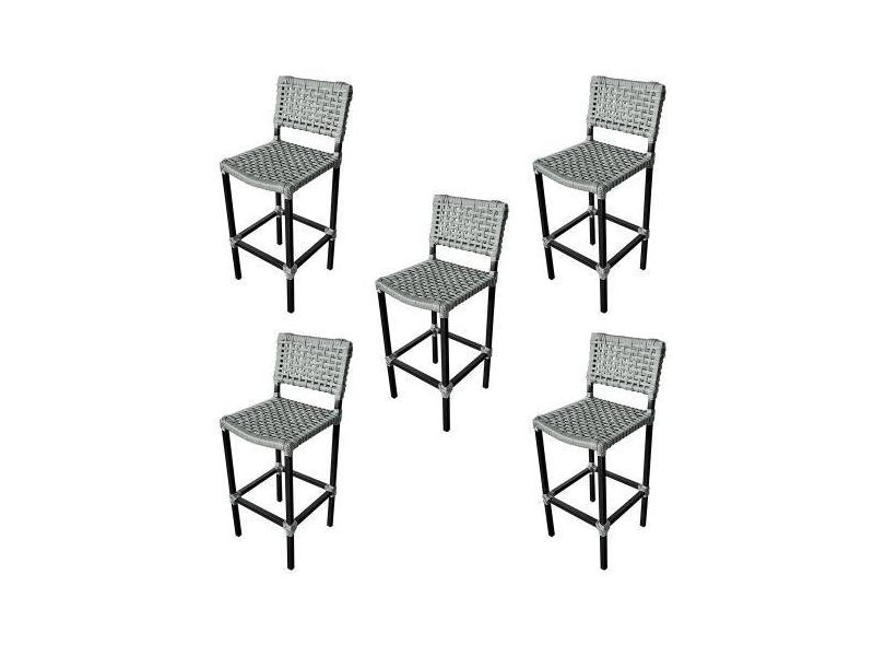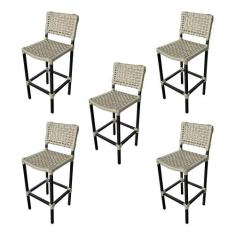 Kit 5 Banquetas Gourmet Alta Assento Curvo França em Aluminio e Corda