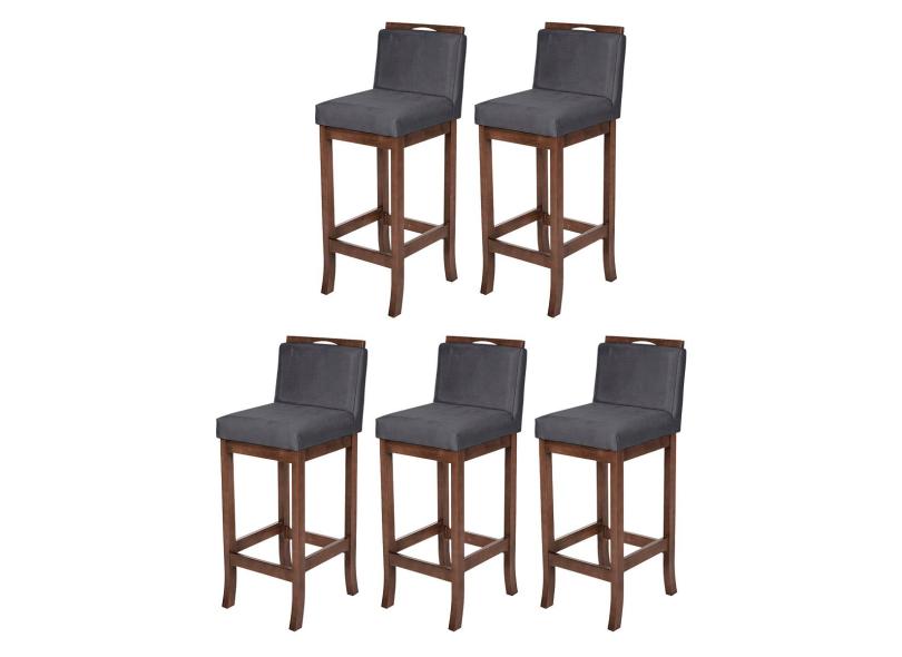 O menor preço encontrado no Brasil para Kit 5 Banquetas Média com Encosto Turim Madeira Capuccino Suede Cinza CCS atualmente é R$ 1.830,88.