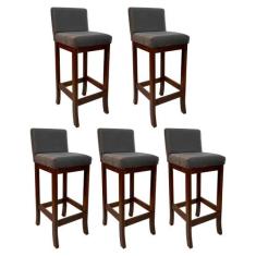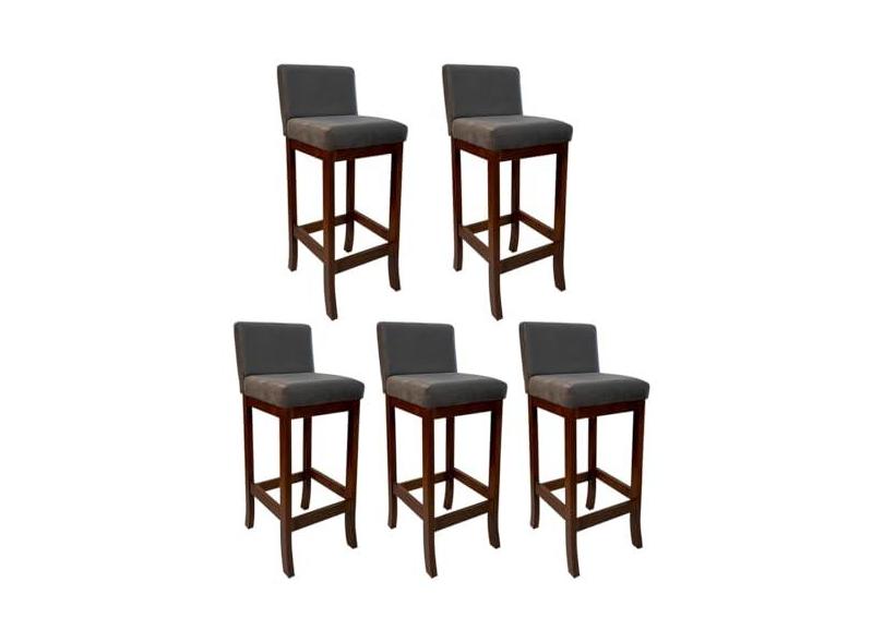 Kit 5 Banquetas Média de Madeira para Bancada Castanho Melody Suede Cinza
