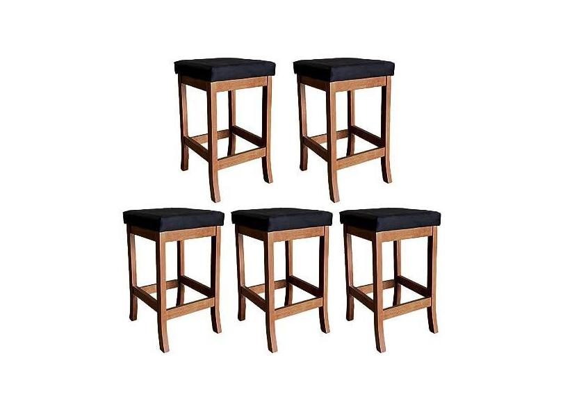 Kit 5 Banquetas Média Estofada Barcelona 64 Cm Madeira Maciça Suede Preto CCS