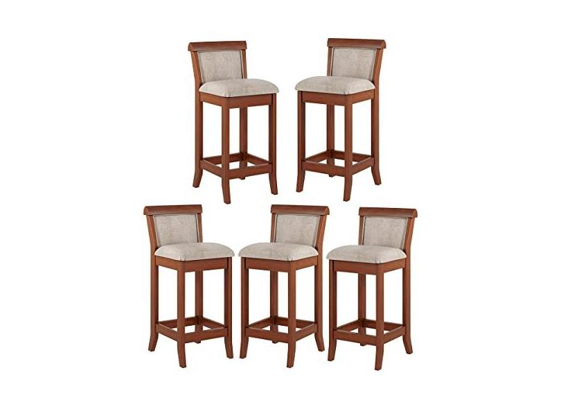 O menor preço encontrado no Brasil para Kit 5 Banquetas Média Estofada Encosto Mônaco 36x90Cm Bancada Madeira Maciça Linho Bege M58 - RMI atualmente é R$ 3.686,45.