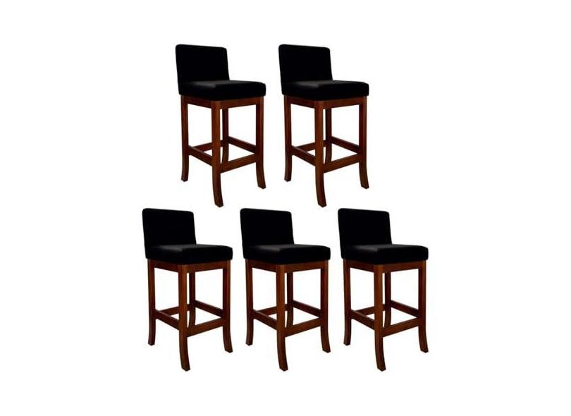 Kit 5 Banquetas Média Estofada para Bancada Castanho Melody Suede Preto