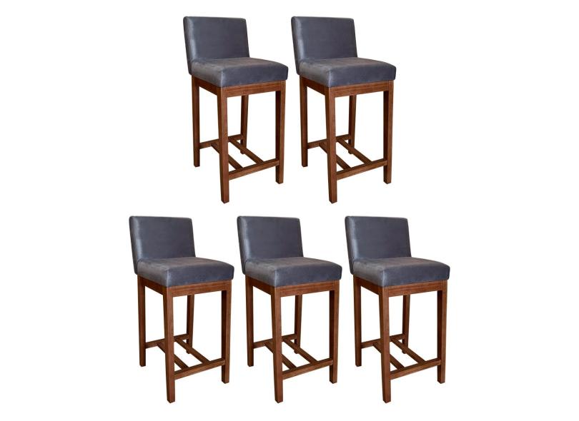 Kit 5 Banquetas Média Lisboa Estofada 90 Cm Madeira Maciça Suede Cinza CCS