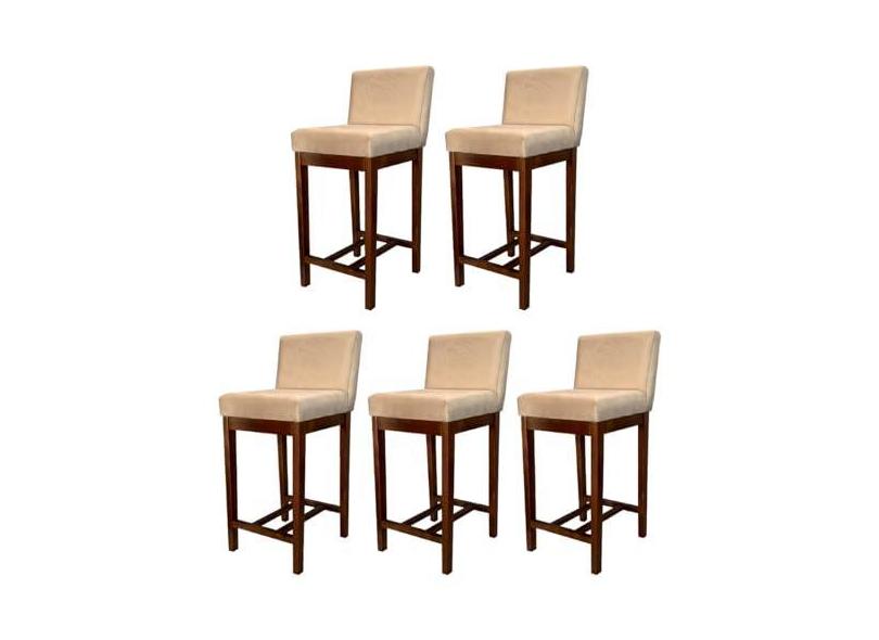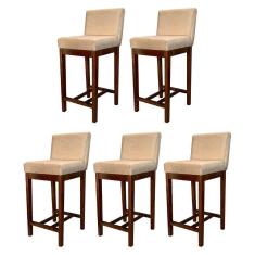 Kit 5 Banquetas Média Lisboa Madeira Capuccino Suede Bege CCS