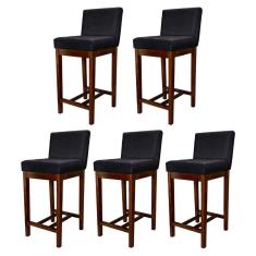 Kit 5 Banquetas Média Lisboa Madeira Capuccino Suede Preto CCS