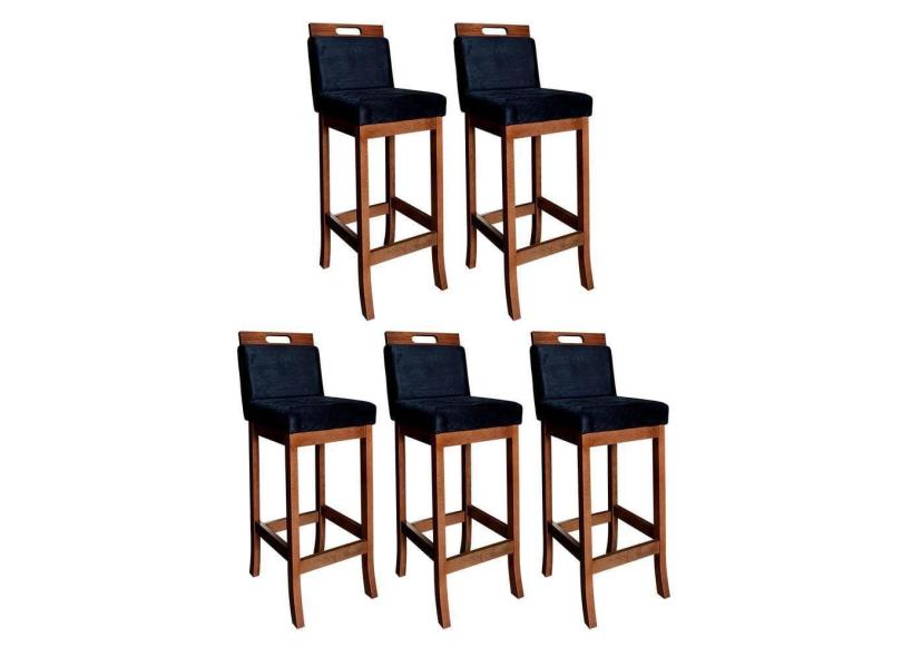 Kit 5 Banquetas Média Milão 94 Cm Madeira Maciça Suede Preto CCS