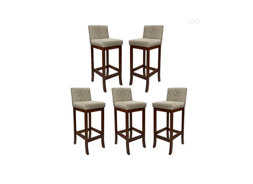 Kit 5 Banquetas Média para Balcão de Cozinha Tóquio Madeira Maciça Matelassê Suede Bege CCS