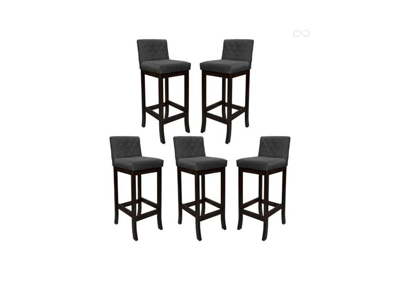 Kit 5 Banquetas Média para Balcão de Cozinha Tóquio Madeira Maciça Matelassê Suede Cinza CCS