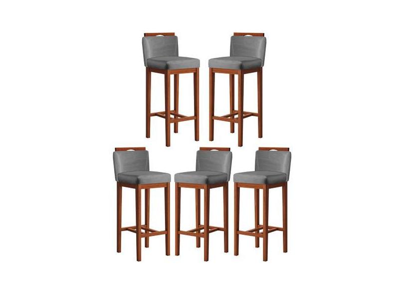 Kit 5 Banquetas Média para Bancada Gourmet 38x92 Cm Líbia Madeira Maci