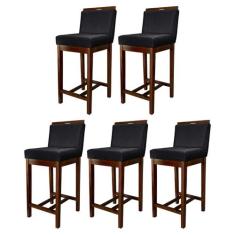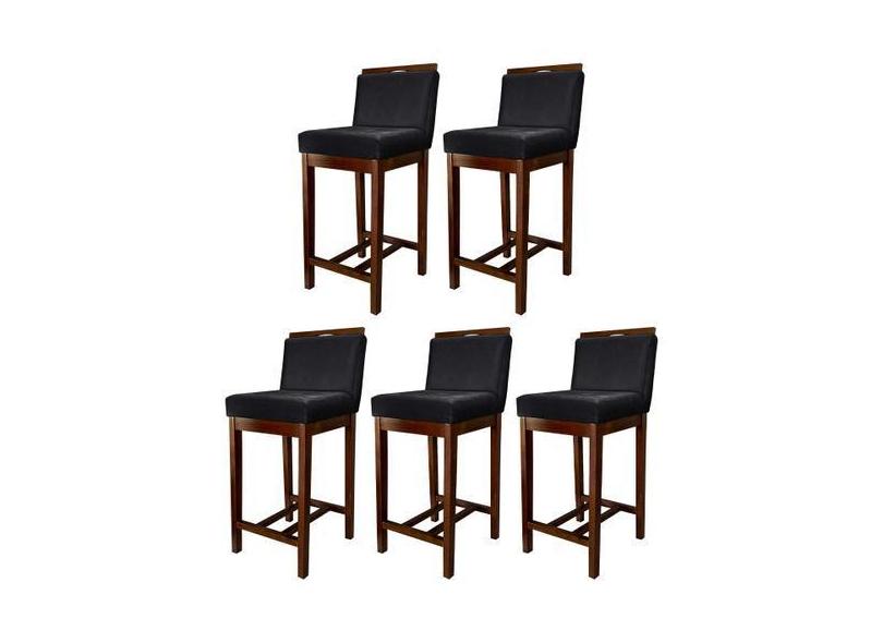 Kit 5 Banquetas Média para Bancada Gourmet Líbia Madeira Capuccino Sue