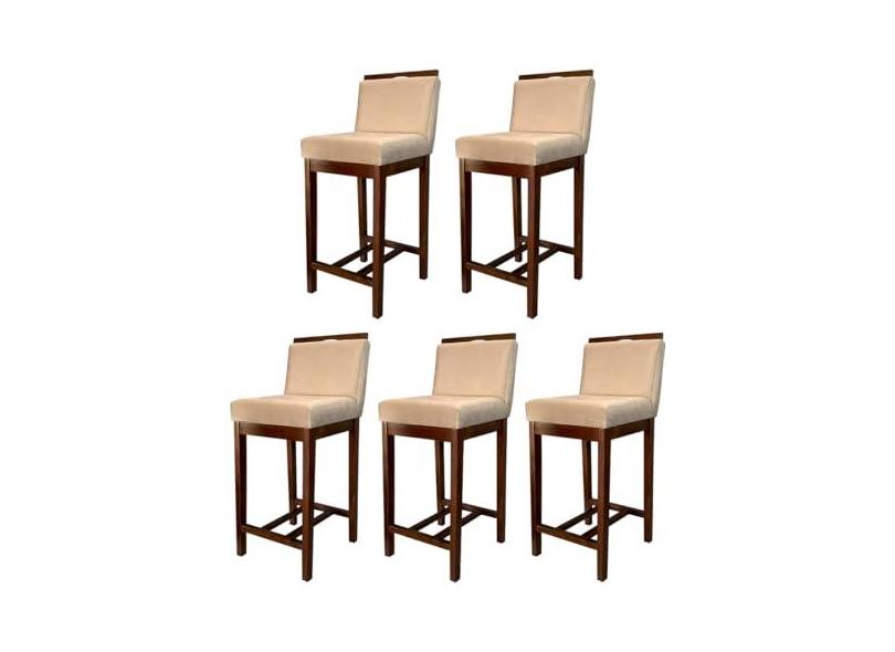 Kit 5 Banquetas Média para Bancada Gourmet Líbia Madeira Capuccino Suede Bege CCS
