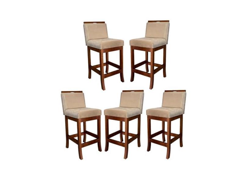 Kit 5 Banquetas Média para Bancada Gourmet Turim Madeira Castanho Suede Bege CCS
