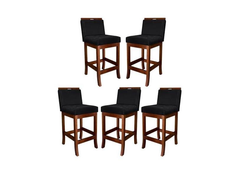Kit 5 Banquetas Média para Bancada Gourmet Turim Madeira Castanho Suede Preto CCS