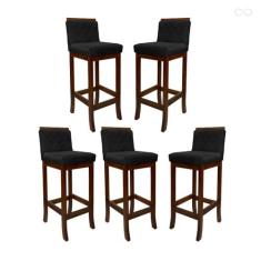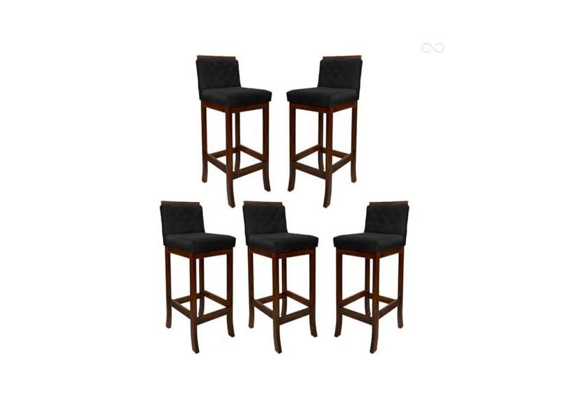 Kit 5 Banquetas Média para Bancada Nice Madeira Castanho Matelassê Suede Preto CCS