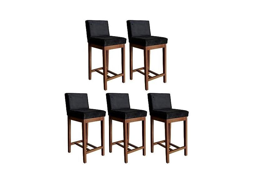 Kit 5 Banquetas Média Preto Lisboa Suede 90 Cm Madeira Maciça CCS