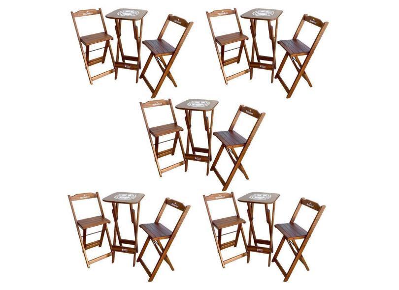 O menor preço encontrado no Brasil para Kit 5 Conjuntos Bistrô Mesa Com 2 Banquetas Dobráveis De Madeira Personalizada Hei - Imbuia Marrom atualmente é R$ 2.309,82.