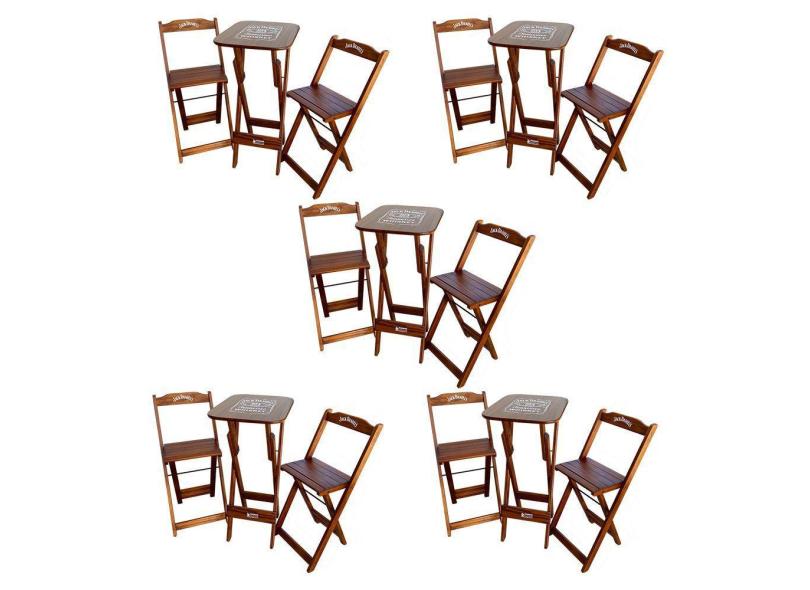 O menor preço encontrado no Brasil para Kit 5 Conjuntos Bistrô Mesa Com 2 Banquetas Dobráveis De Madeira Personalizada Jack - Imbuia Marrom atualmente é R$ 2.389,47.