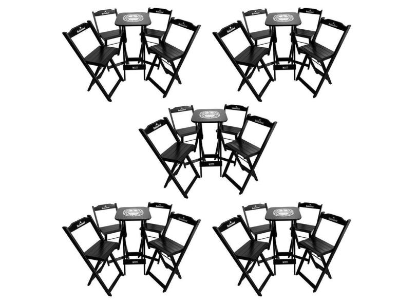 O menor preço encontrado no Brasil para Kit 5 Conjuntos Bistrô Mesa Com 4 Banquetas Dobráveis De Madeira Personalizada Hei - Preta atualmente é R$ 3.479,85.