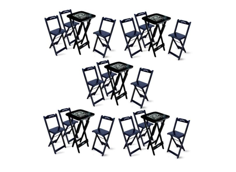 O menor preço encontrado no Brasil para Kit 5 Conjuntos De Mesa Bistrô Dobrável Jack Daniel`s Com 3 Banquetas De Madeira Preta atualmente é R$ 2.846,25.