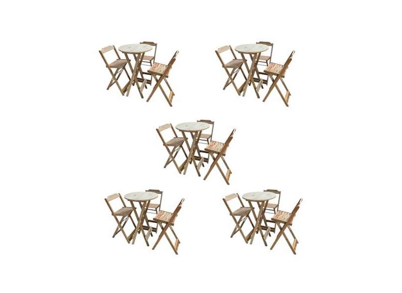 KIT 5 JOGOS DE MESAS BISTRÔ DE MADEIRA DOBRÁVEL COM 3 BANQUETAS - CRUA