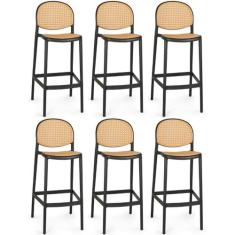 Kit 6 Banqueta Alta com Encosto Roma em Polipropileno - Preto