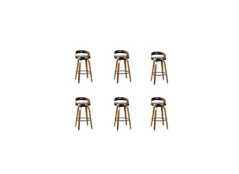 Kit 6 Banqueta para Cozinha Alta Giratória Madeira Roma Preto/Marrom