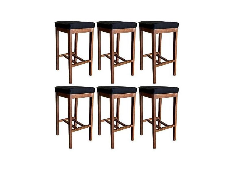 Kit 6 Banquetas Alta Bali Estofada Moderna 74 Cm Madeira Maciça Suede Preto CCS