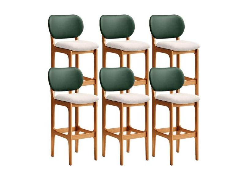 Kit 6 Banquetas Alta Bar Cozinha Sala Jantar Betta L02 Imbuia Facto Verde Linho Cru - Lyam Decor