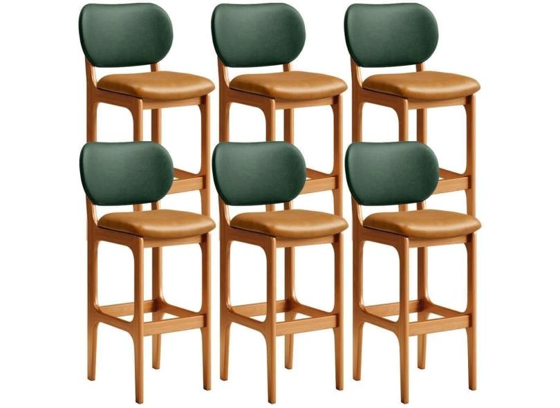 Kit 6 Banquetas Alta Cozinha L02 Imbuia Verde Whisky