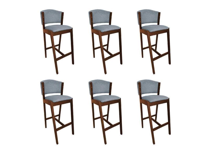 O menor preço encontrado no Brasil para Kit 6 Banquetas Alta De Madeira Maciça Mel Premium Ana Com Encosto Linho Cinza - Cor: Cinza atualmente é R$ 3.376,63.