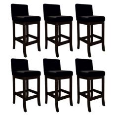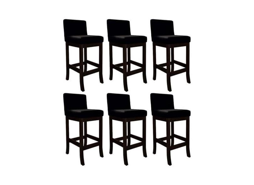 Kit 6 Banquetas Alta em Madeira Estofada Capuccino Melody Suede Preto