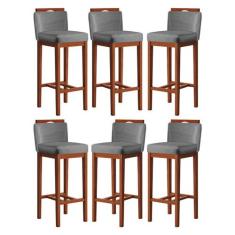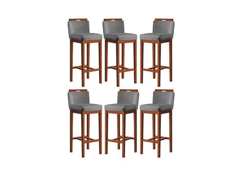 O menor preço encontrado no Brasil para Kit 6 Banquetas Alta Estofada com Encosto 38x102 Cm Líbia Madeira Maci atualmente é R$ 2.797,35.