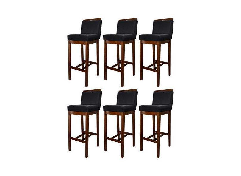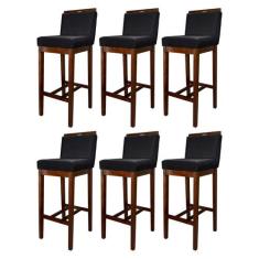 Kit 6 Banquetas Alta Estofada com Encosto Líbia Madeira Capuccino Sued