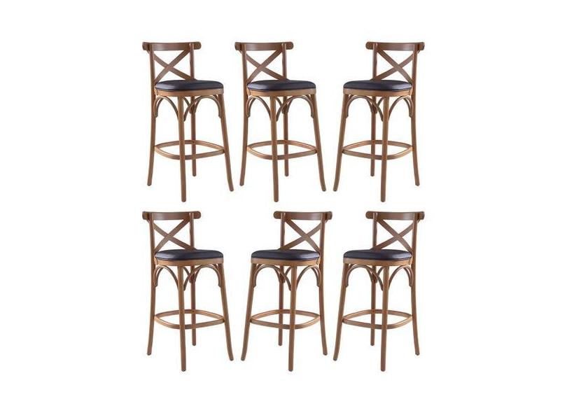 Kit 6 Banquetas Alta Estofada Espanha 43 x 103 Cm Madeira Maciça Mel F