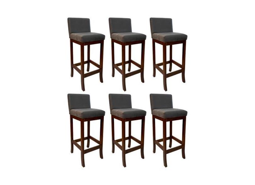 Kit 6 Banquetas Alta Estofada para Bancada Castanho Melody Suede Cinza