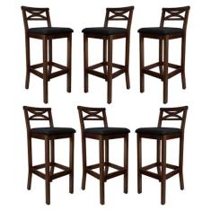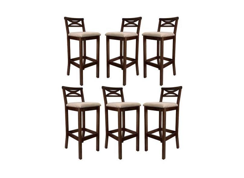 Kit 6 Banquetas Alta Estofada para Bancada Madri Madeira Capuccino Sue