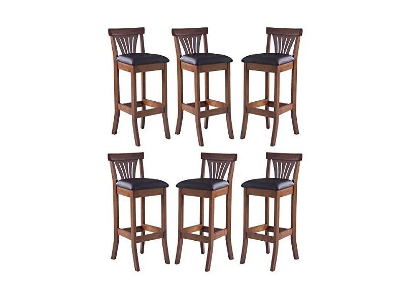 Kit 6 Banquetas Alta Estofada Valentina 36 x 100 Cm Madeira Maciça Imbuia Facto Marrom L74 - RMI