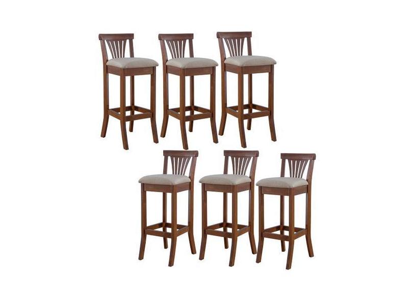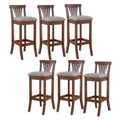 Kit 6 Banquetas Alta Estofada Valentina 36 x 100 Cm Madeira Maciça Ver
