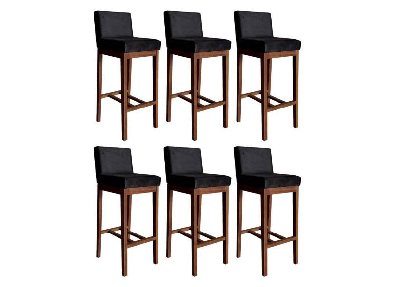 Kit 6 Banquetas Alta Lisboa Estofada 100 Cm Madeira Maciça Suede Preto CCS
