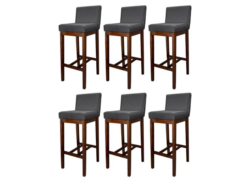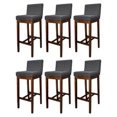 Kit 6 Banquetas Alta Lisboa Estofada Lisboa Madeira Capuccino Suede Cinza ccs