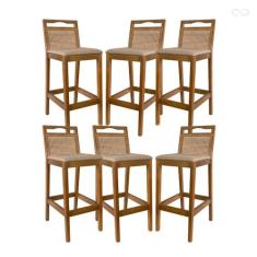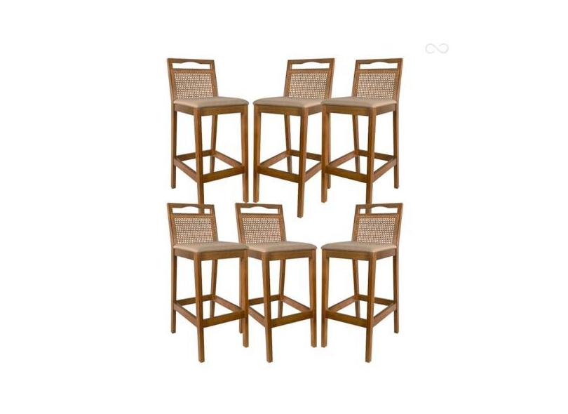 O menor preço encontrado no Brasil para Kit 6 Banquetas Alta para Balcão em Madeira Estofada Valência Rattan Amêndoa Linho Bege CCS atualmente é R$ 2.792,46.