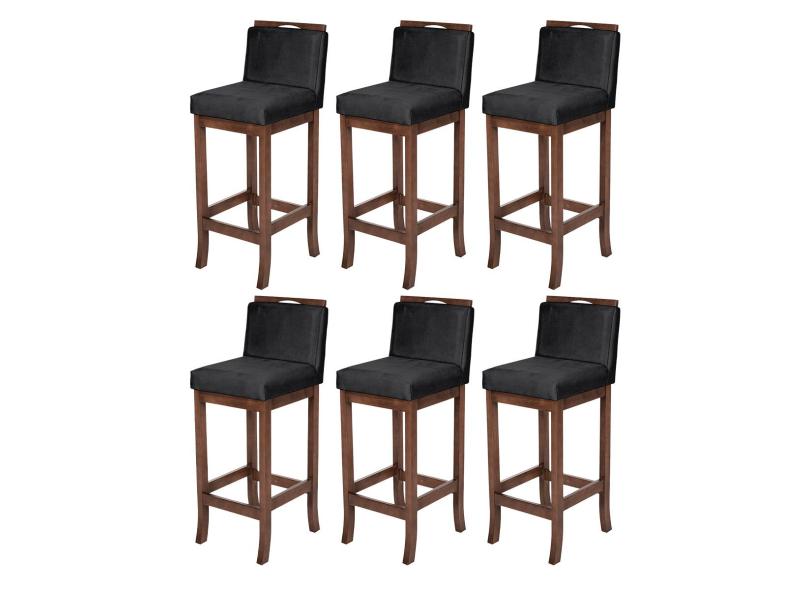 O menor preço encontrado no Brasil para Kit 6 Banquetas Alta para Cozinha Gourmet Turim Madeira Capuccino Suede Preto CCS atualmente é R$ 2.377,75.