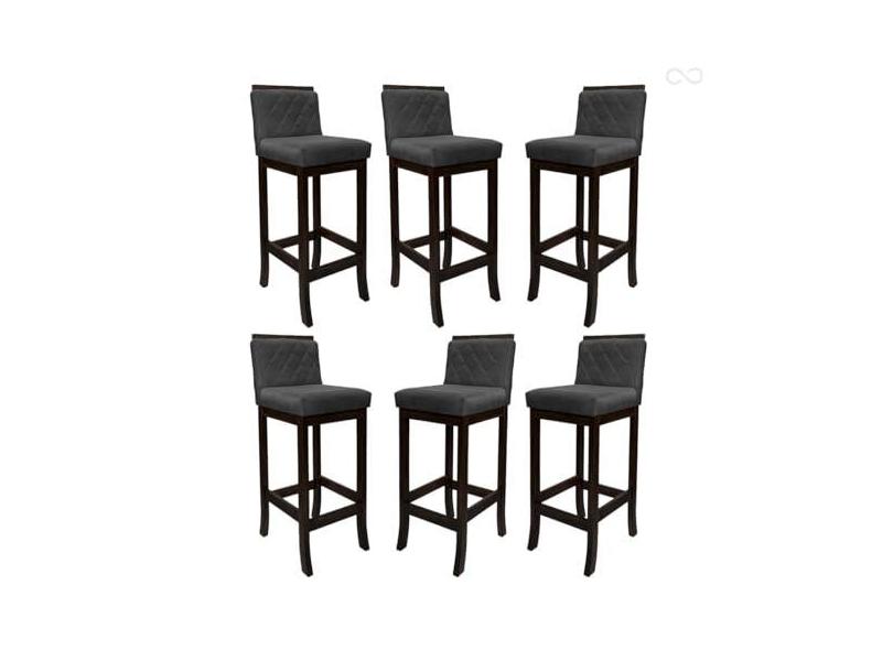 Kit 6 Banquetas Alta para Cozinha Nice em Madeira Maciça Matelassê Suede Cinza CCS