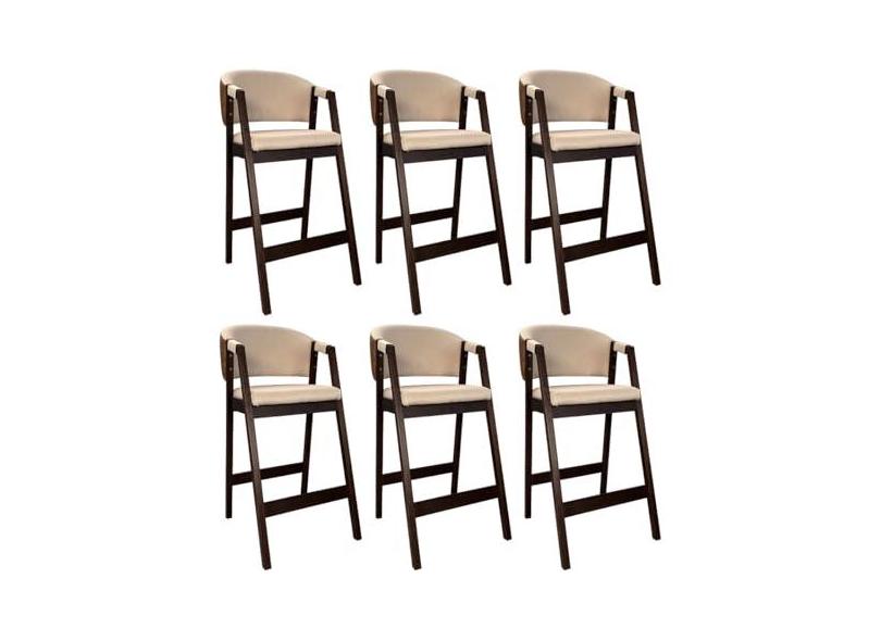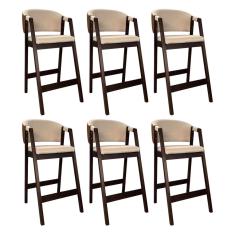 Kit 6 Banquetas Alta para Cozinha Ravena em Madeira Maciça Capuccino Linho Bege Marrom CCS