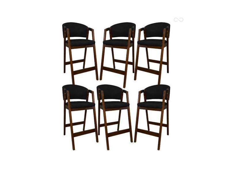 Kit 6 Banquetas Alta para Cozinha Ravena em Madeira Maciça Pinhão Sint