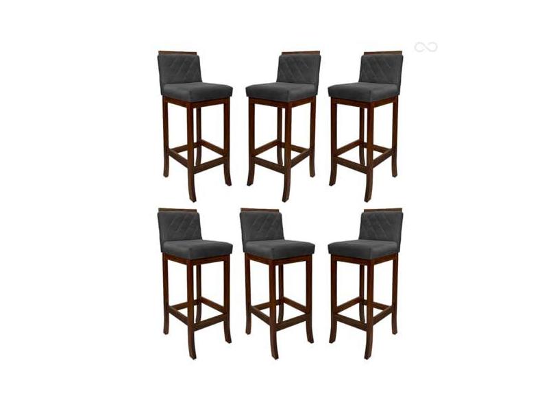 Kit 6 Banquetas Alta para Ilha de Cozinha Nice Madeira Castanho Matelassê Suede Cinza CCS